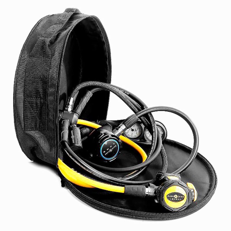 Удобная вместительная сумка оригинальной формы, позволяющая защитить ваш комплект регуляторов во время хранения и перевозки. Позволяет максимально компактно разместить два комплекта регуляторов Круглая форма позволяет избежать перегибов шланга Размеры: 33 х 30 х 10 см (10 литров) Вес: 0,4 кг