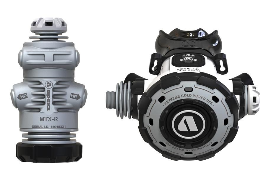Регулятор MTX-R является рекреационной версией военного регулятора MTX и предназначен для использования в условиях экстремально холодной воды. — Первая ступень с теплообменниками, которые увеличивают поверхность, а также сухая камера защищают регулятор от обмерзания.- Вращающаяся турель с портами, расположенными под удобным углом.- Первая ступень по умолчанию снабжена пятым портом.- Простая в использовании вторая ступень без регулировок уменьшает риск случайного free flow.- Вращающийся с обоих концов шланг для максимальной подвижности и комфорта.- Запатентованный теплообменник вокруг клапанного механизма, для обогрева попадающего во вторую ступень воздуха от окружающей среды.- Металлическая крышка второй ступени для дополнительного теплообмена с большой кнопкой для удобной продувки даже в толстых перчатках.- Быстросъемная клипса для шлейки-держателя второй ступени. Масса версии DIN – 1193 г, YOKE – 1339 г.Масса второй ступени – 276 граммРабота дыхания – 1,75 дж/л