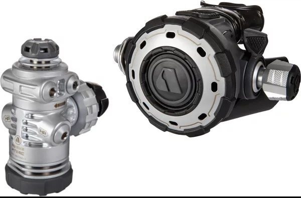 Первая ступень: — Мембранная сбалансированная — Первая ступень с теплообменниками, которые увеличивают поверхность, а также сухая камера защищают регулятор от обмерзания. — Вращающаяся турель с портами, расположенными под удобным углом. — Первая ступень по умолчанию снабжена пятым портом. 5LP/HP2 Вторая ступень: — Сбалансированная — Вторая ступень снабжена системой инжекции воздуха Вентури, а также регулировкой сопротивления дыханию. — Вращающийся с обоих концов шланг для максимальной подвижности и комфорта. — Запатентованный теплообменник вокруг клапанного механизма, для обогрева попадающего во вторую ступень воздуха от окружающей среды. — Металлическая крышка второй ступени для дополнительного теплообмена с большой кнопкой для удобной продувки даже в толстых перчатках. — Быстросъемная клипса для шлейки-держателя второй ступени.