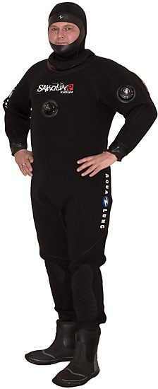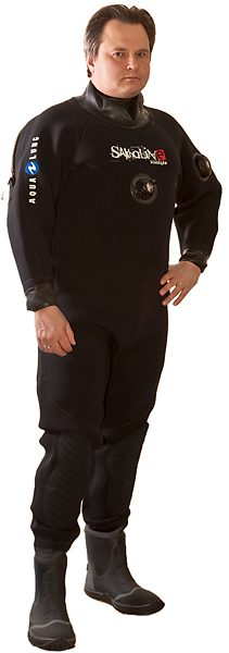 Сухой гидрокостюм из неопрена высокой плотности 4,5 мм. Поставляется с отделяемым шлемом. Усиленные встроенные боты. Латексные манжеты и шейный обтюратор. Вращающийся клапан поддува на груди и стравливающе-предохранительный клапан на левом рукаве.