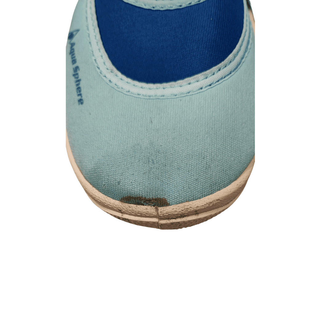 Причина уценки- небольшой надрыв в области носка на правой тапочке (см.фото) Обувь детская Beachwalker Kids от Aqua Sphere для занятий водными видами спорта и для бассейна, тапочки для пляжа. Низко профилированная водная обувь прекрасно подходит для прогулок по песчаным и каменистым пляжам. Выпускаются специально для детей. Неопреновые тапочки для пляжа с каучуковой нескользящей прозрачной подошвой. Размеры: 20-35.Цвета: голубой