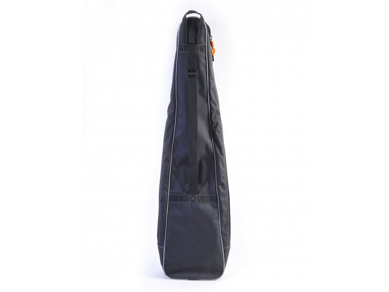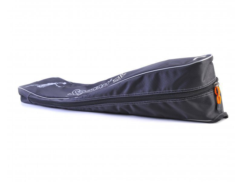 Сумка чехол для переноса комплекта №2 — маски, трубки, и более длинных охотничьих ласт (на 10 см), чем модель БАЗАН. Материал чехла достаточно мягкий что бы предотвратить от повреждения содержимое: маску и ласты.  Регулируемый наплечный ремень для комфортного переноса чехла на плече. Люверсы из нержавеющей стали для слива воды расположены внизу кармана для маски и трубки, а также главного отделения под ласты. Характеристики: Материал:поликордура Oxford 1680D Молния YKK. Табличка для идентификации владельца Размер 23х15х105см Вес 0.4 кг.