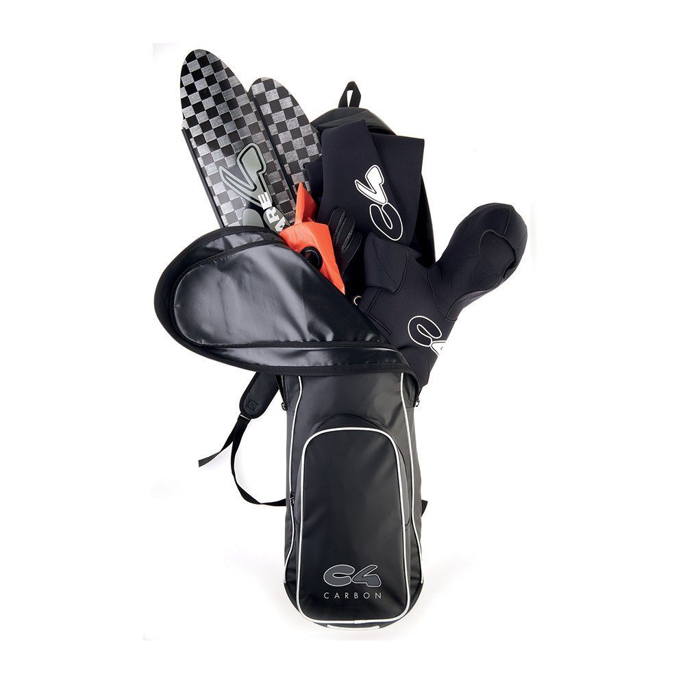 Сумка — рюкзак для длинных ласт C4 TOP VOLARE. Удобный аксессуар для транспортировки и механической защиты экипировки, с лямками на плечи, застежками на молнии и с дополнительным отсеком под маску/трубку и прочие малогабаритные элементы снаряжения. Габариты — 1200*350*200 мм. Материал: нейлон.