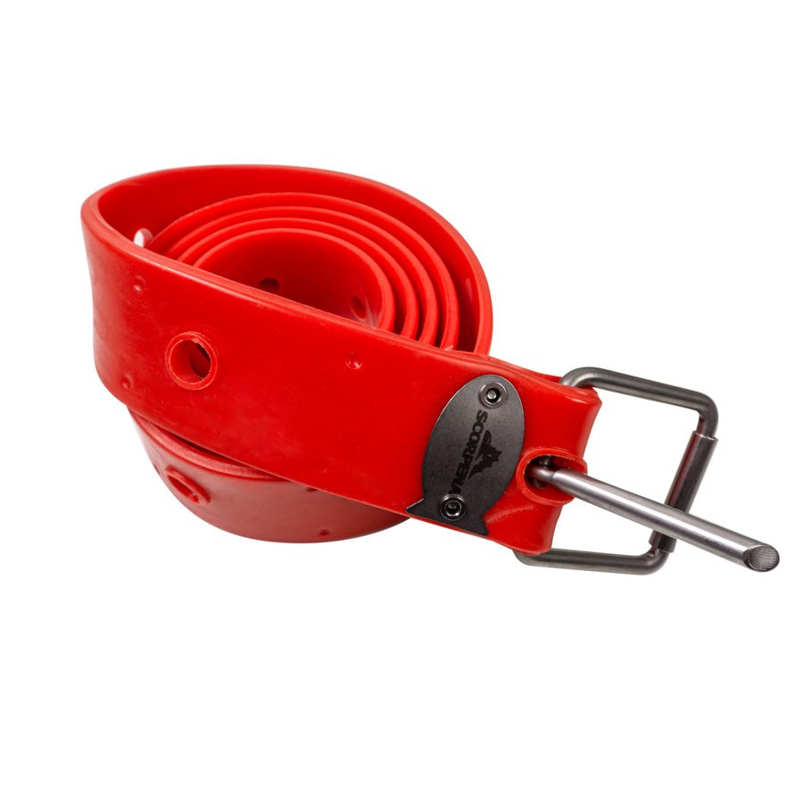 Безопасная пряжка марсельского типа из нержавеющей стали давно стала эталоном. Она сочетает в себе простоту и надежность. Благодаря её конструкции пловец не тратит ни секунды времени при экстренном сбрасывании ремня. Ремень выполнен из эластичного и прочного материала (особая смесь смол на основе химически стойкого полиуретана), который так же обладает противоскользящим эффектом. Материал изделия предотвращает перемещение грузов по поясу и движение всего ремня по телу пловца. Это особенно ценно при нырке и всплытии.