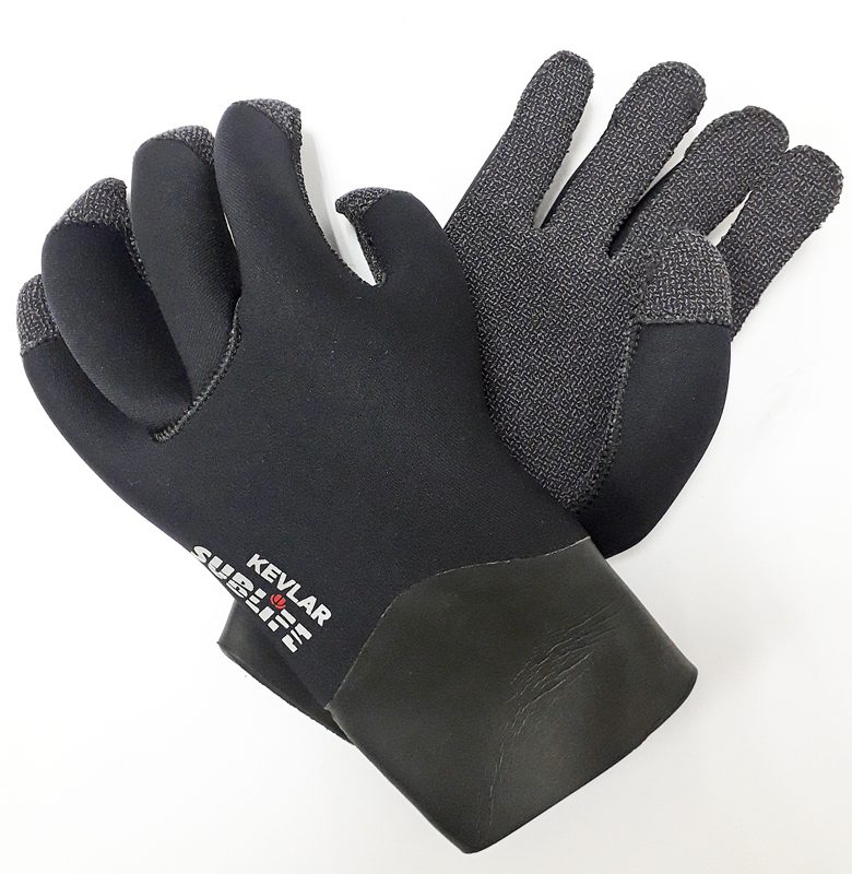 Перчатки неопреновые 5 мм Kevlar Cuff с манжетой «»гладкая кожа»» Sublife Износостойкие перчатки для дайвинга анатомического кроя с удлиненной манжетой сделают ваше погружение комфортным и безопасным. Неопреновые перчатки толщиной 5 мм с покрытием ладони и пальцев Kevlar и манжетой из гладкого неопрена на запястье, прослужат не один сезон и гарантированно защитят ваши руки от проколов и порезов в случае сложных погружений или работы по сбору морепродуктов. Полное КЕВЛАРОВОЕ покрытие ладони и пальцев Анатомический крой пальцев Обтюраторы из гладкого неопрена Эластичный нейлон подкладка и верх перчаток