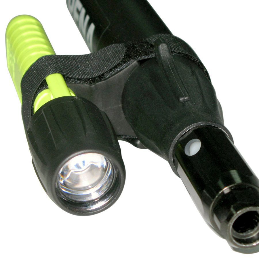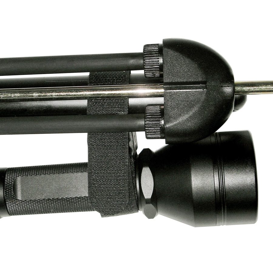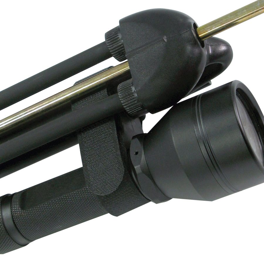 Адаптер для крепления фонаря к ружью — прекрасная возможность для тех охотников, кто желает усовершенствовать и доработать своё ружьё. С помощью этого нехитрого, но продуманного и хорошо сделанного приспособления Вы сможете надёжно закрепить на стволе фонарик или лазерный цели указатель. Наилучшим образом этот адаптер подходит для ружей с диаметром ствола 25 — 40 мм, то есть как для арбалетов, так и для пневматов. Корпус фонарика может быть не только круглого сечения (см. фото), но диаметром не более 30 мм. Отличительная особенность этого крепежа в том, что с его помощью фонарь может быть установлен на ружьё или снят с него в считанные секунды — благодаря простой схеме закрепления и в любых полевых условиях или даже на воде — благодаря отсутствию необходимости в использовании какого бы то ни было инструмента. Размер распорки между фонарём и стволом позволяет закреплять с помощью этого адаптера не только маленькие фонарики, но и фонари среднего размера или с увеличенным диаметром отражателя. Этот адаптер может быть установлен в наиболее удобном по длине месте ствола и под любым углом к его продольной оси.
