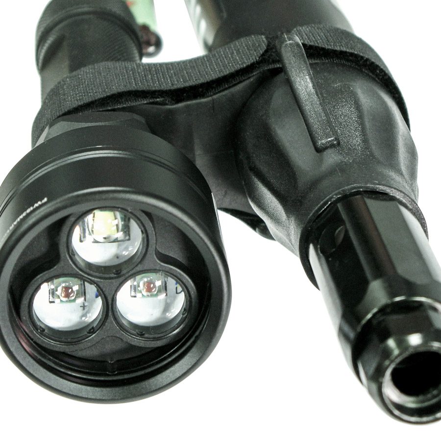 Адаптер для крепления фонаря к ружью — прекрасная возможность для тех охотников, кто желает усовершенствовать и доработать своё ружьё.С помощью этого нехитрого, но продуманного и хорошо сделанного приспособления Вы сможете надёжно закрепить на стволе фонарик или лазерный цели указатель.Наилучшим образом этот адаптер подходит для ружей с диаметром ствола 25 — 40 мм, то есть как для арбалетов, так и для пневматов. Корпус фонарика может быть не только круглого сечения (см. фото), но диаметром не более 30 мм.Отличительная особенность этого крепежа в том, что с его помощью фонарь может быть установлен на ружьё или снят с него в считанные секунды — благодаря простой схеме закрепления и в любых полевых условиях или даже на воде — благодаря отсутствию необходимости в использовании какого бы то ни было инструмента.Размер распорки между фонарём и стволом позволяет закреплять с помощью этого адаптера не только маленькие фонарики, но и фонари среднего размера или с увеличенным диаметром отражателя.Этот адаптер может быть установлен в наиболее удобном по длине месте ствола и под любым углом к его продольной оси.