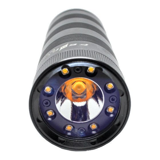 Фонарь подводный FEREI W180WW, желтый свет, со съемными АКБ – это модернизированный подводный фонарь с диодом желтого света, яркостью светодиода 4500 кельвин и мощностью светового потока 5636 люмен. FEREI W180WW специально разработан для любительского и профессионального дайвинга, подводной охоты. В фонаре W180WW установлены один CREE XHP-70 и восемь диодов CREE XP-G. Изготовлен из высокопрочного авиационного алюминия с анодированием III степени, с двойной защитой резьбовых соединений. Фонарь FEREI W180WW оснащен удобным магнитным переключателем света на торце и оснащен терморегулятором, защищающим прибор от перегрева.У фонаря FEREI W180WW используются сразу 9 диодов теплого белого света от американской компании CREE, центральный диод CREE XHP-70 и восемь диодов CREE XP-G, которые помещены в отдельные оптические системы – каждый диод с индивидуальной линзой и собственным отражателем – и генерируют более 5630 люмен яркости. Данное конструкторское решение помогает получить от подводного фонаря FEREI W180WW высококлассное освещение. FEREI W180WW предназначен для использования с четырьмя АКБ серии 18650 их можно заряжать в зарядном устройстве.Уникальность фонаря FEREI W180WW заключается в возможности очень тонкой настройки под потребности. Направленный и рассеиваемый свет настраиваются отдельно, для каждого из них возможны пять режимов работы: 10%, 25%, 50%, 75% и 100% яркости.Фонарь FEREI W180WW регулировать так, чтобы, например, рассеиваемый свет светил на 75%, а центральный пучок на 10%. Множество различных вариаций, который подойдут, практически под любые условия под водой. Время работы в режиме максимальной мощности (5630 lm) до 3 часов, в режиме минимальной мощности (216 lm) до 30 часов.У фонаря комфортное управление магнитным переключателем, расположенным на торце фонаря и его удобно переключать одной рукой.Фонарь подводный FEREI W180WW, желтый свет прекрасно подойдет для работы и охоты в мутной воде, желтый свет фонаря не отражается от частичек взвеси, эффективно «пробивая» толщу воды.При низком заряде аккумуляторов фонарь FEREI W180WW начинает мигать, предупреждая о скором выключении фонаря.Фонарь FEREI W180WW поставляется без аккумуляторов, их нужно купить заранее, чтобы можно было проверить работоспособность фонаря. Для этого фонаря отлично подойдут аккумуляторы Liitokala 18650BPCV Li-ion 3400 mAh, ЗЕЛЕНЫЕ, с защитой (арт. Lii18650BPCV) или аккумуляторы Liitokala Li-ion Lii-35S 18650 3500 mAh, 10A, 3.7V (арт. Lii1865010A).Предупреждение: фонарь предназначен для использования только в воде. При использовании на суше диод фонаря сгорит. Эта поломка не попадает под гарантийный случай.Комплектация: фонарь (без аккумуляторов), инструкция, зарядное устройство в комплект не входит.Предупреждение: фонарь предназначен для использования только в воде. При использовании на суше диоды фонаря сгорят. Эта поломка не попадает под гарантийный случай.Комплектация: фонарь (без аккумуляторов), инструкция, зарядное устройство в комплект не входит.Гарантия: гарантийный срок 12 месяцев с момента приобретения.Советы использованию, обслуживанию и хранению:1. Не направляйте луч фонаря в глаза.2. Фонарь можно использовать только в воде, на суше диод фонаря перегорит из-за перегрева.3. Не устанавливайте аккумуляторы с обратной полярностью.4. Храните фонарик без батареек, чтобы предотвратить возможную коррозию из-за утечки аккумулятора.5. Всегда заряжайте аккумулятор при тусклом свете, это п