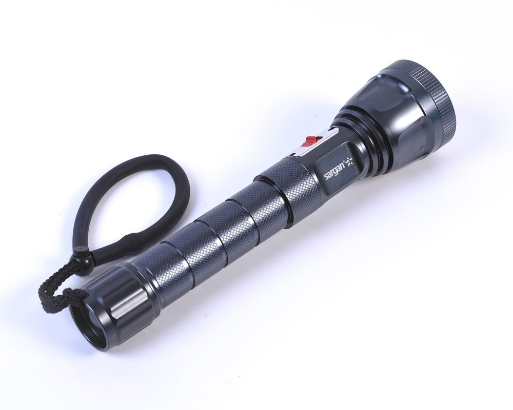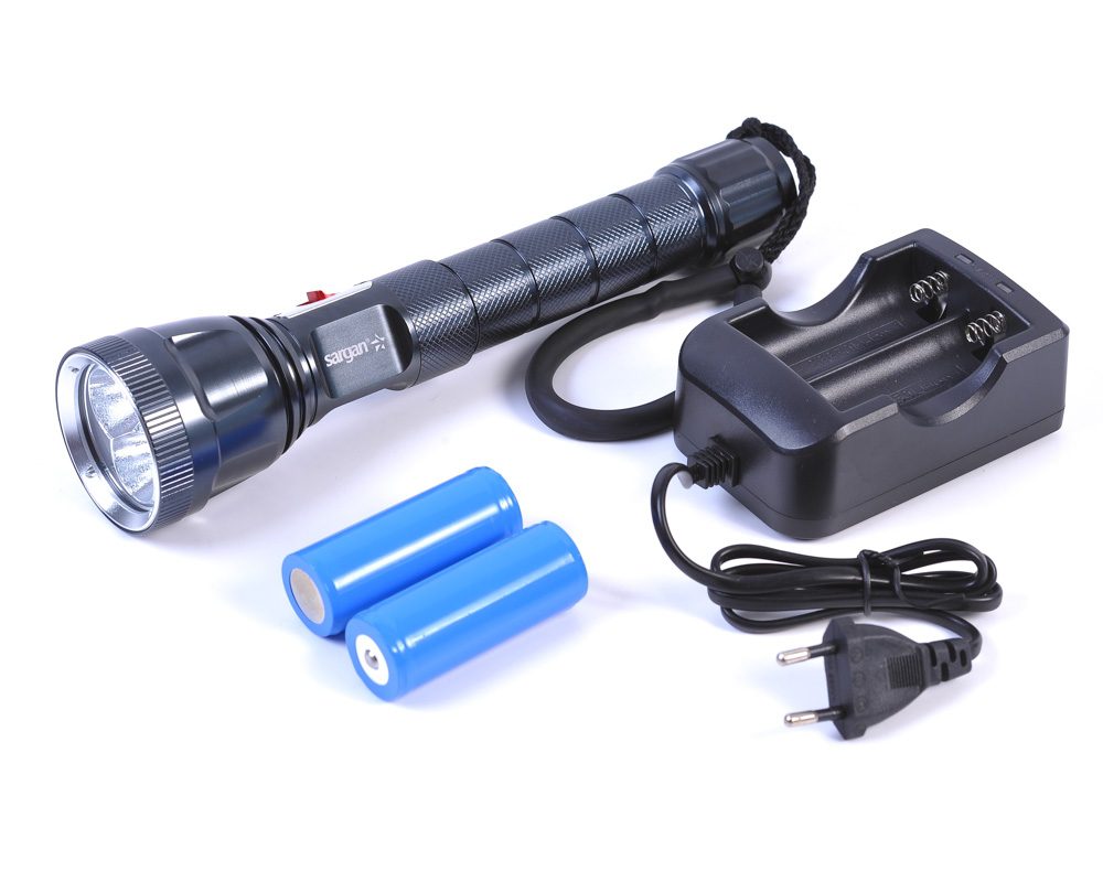 Фонарь Сарган «»ИРБИС»» 2100лм прошел опрессовку и контроль водонепроницаемости на глубине 100м. Рекомендуемая глубина использования до 100м. Фонарь есть в двух исполнениях: с белым светом и с желтым светом. Техническая информация: Корпус фонаря — анодированный алюминиевый сплав Переключатель — электромагнитный, ползункового типа Фонарь имеет отрицательную плавучесть. Линза — высокопрочный поликарбонат Технические характеристики: Цвет луча — холодный, теплый (в зависимости от выбранной модификации) Максимальная глубина использования — 100м Вес(без батареек) — 394 грамм Угол луча — 65 градусов Размер — 260мм * 38мм (62 мм — диаметр головы) Максимальный световой поток – 2100 люмен Время работы в режиме: — 100% — 200 минут * — 50% — 350 минут * — 20% — 600 минут * 3 Диода CREE U2 LED Аккумуляторы – 2 шт. литий-ионных, тип 26650, 3.7 вольт, емкость – 5000 миллиампер в час. Время зарядки двух аккумуляторов одновременно 6-7 часов * *Данные значительно зависят от режима работы электросети и температуры окружающей среды. Фонарь Сарган «»ИРБИС»» 2100 лм рекомендуется для использования в качестве основного фонаря подводника или подствольного фонаря охотника. Помните, что использование любого подводного осветительного прибора вблизи предельных для него глубин грозит его выходом из строя. Это может стать не только причиной «»увлекательных приключений»», но и экстремальной опасности! Тщательно и регулярно обслуживайте уплотнительные О-ринги вашего фонаря. Используйте силиконовую смазку. Не допускайте попадания на О-ринги пыли, тонких нитей и волосков! Опресняйте фонарь после каждого использования в соленой воде и протирайте насухо. Не забывайте промывать его после работы вблизи глинистого или заиленного дна в пресных водоемах!