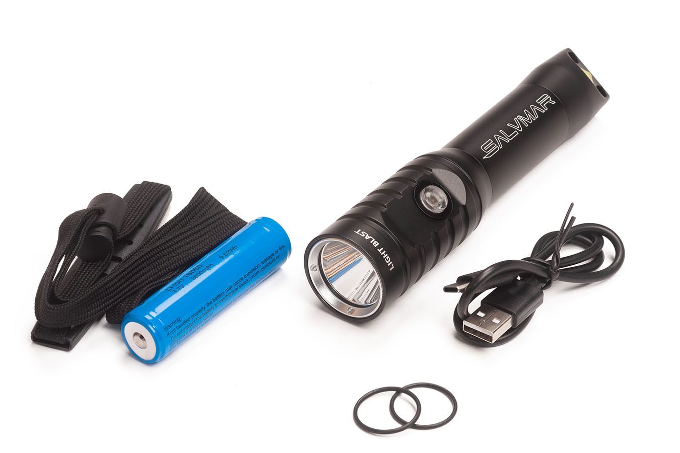 Важнейшей новой «фишкой» фонаря Salvimar BLAST является возможность зарядки через микро-USB встроенную под крышку фонаря. В комплекте с фонарем идет зарядный кабель типа USB Type-C, что позволит Вам заряжать Ваш подводный фонарь практически везде и от любого источника питания, будь то компьютер, Powerbank или розетка в автомобиле.Технические характеристики:- Диод CREE XM-L2 мощностью 1200 LM- Температура свечения 6500 К. (Холодный свет)- Время работы: при 100% мощности = 120 минут, при 50% мощности 200 минут.- Глянцевый алюминиевый светоотражатель- Угол светового луча в основном пучке света составляет 16°- Поверхностное покрытие анодирование- Оснащен одним литий-ионный аккумулятором размер 18650- Оснащен защитой от перегрузки батареи и защитой от не правильной полярности- Водонепроницаемость: IPX8 (До глубины в 60 метров)- Габаритные размеры: 158 мм (длина) * 34 мм (диаметр головы) * 26 мм (диаметр корпуса)- Вес фонаря 205 грамм. (Без аккумулятора)ИНДИКАТОР ЗАРЯДА АККУМУЛЯТОРА:Фонарь оснащен светодиодным индикатором заряда аккумулятора, расположенным вокруг кнопки включения. Когда аккумулятор полностью заряжен, светодиодный индикатор будет гореть зеленым цветом. Когда мощность батареи составляет менее 50% — красным; когда мощность батареи составляет менее 30 %, — будет мигать красным цветом.УСТАНОВКА АККУМУЛЯТОРА:Сначала отвинтите основную крышку фонаря, а затем внутреннюю крышку с USB зарядкой. Проверьте полярность аккумулятора, вставьте аккумулятор нужной полярностью внутрь фонаря и завинтите колпачки в обратном порядке.Не затягивайте крышки изо всех сил, чтобы избежать повреждения уплотнительных колец.ЗАРЯДКА АККУМУЛЯТОРА:Отвинтите торцевую крышку и используйте зарядный кабель Микро-USB для подключения к сети.Для зарядки Вы можете использовать любой источник питания с USD входом Power Bank/компьютер/розетку.При зарядке светодиодный индикатор горит красным цветом; когда светодиодный индикатор горит зеленым цветом, фонарь полностью заряжен.