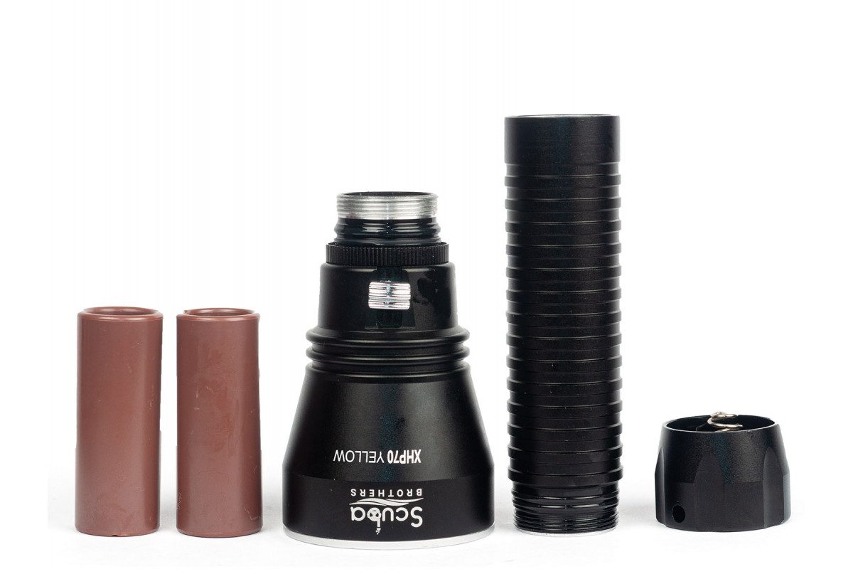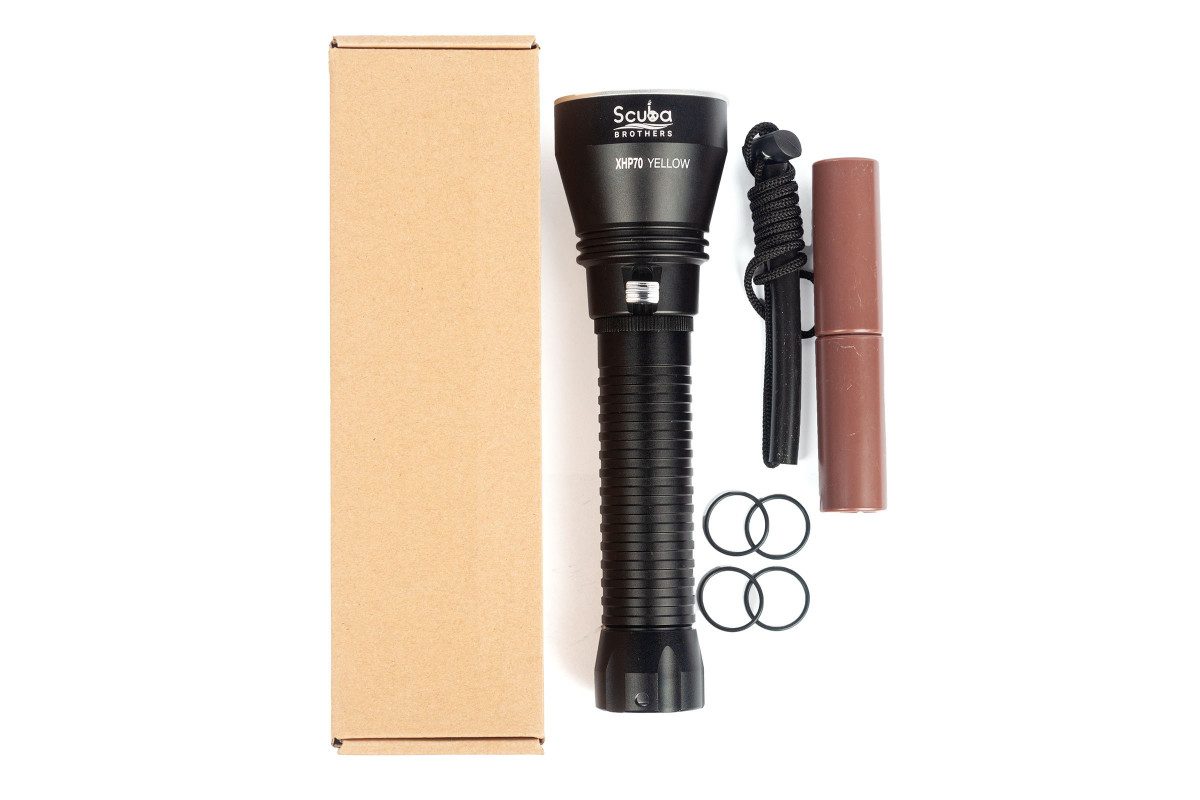 Фонарь SB D170, 4290 lm, желтый свет — фонарь подводный для охоты и дайвинга, который изготовлен из высокопрочного авиационного алюминия с анодированием. Фонарь оборудован магнитным переключателем (ползуноком). Фонарь SB D170, 4290 lm очень яркий, лёгкий и компактный. Фонарь с желтым светом имеет основное поле засветки и пробивной центральный луч, идеален для погружения в мутной или цветущей воде. Предупреждение: фонарь предназначен для использования только в воде. При использовании на суше диод фонаря сгорит. Эта поломка не попадает под гарантийный случай.