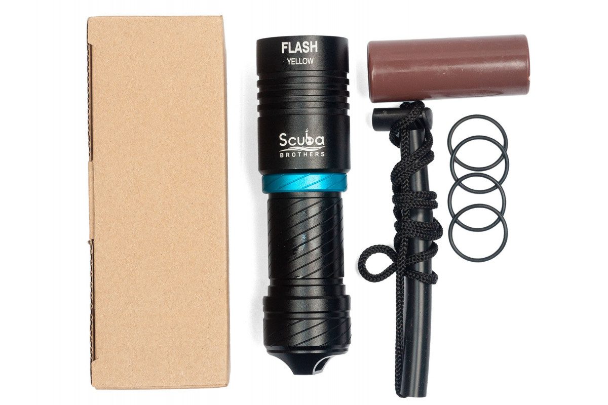 Фонарь SCUBA BROTHERS FLASH BLACK 2000Lm CREE XM-L L2, теплый белый свет, для подводный для охоты и дайвинга, с максимальной глубиной погружения 100 метров. SCUBA BROTHERS FLASH изготовлен из высокопрочного авиационного алюминия с анодированием. Удобный магнитный переключатель (ползунок). Фонарь очень яркий, лёгкий и компактный.Диод CREE XM-L L2 теплый белый свет отличается высокой надежностью и долговечностью. Диод имеет основное поле засветки и пробивной центральный луч, идеален для погружений в прозрачной воде и для фото/видео съемок.Фонарь комплектуется ремешком на запястье и даже если у выпадет у вас из рук, то он не утонет. Так же этот компактный фонарь очень удобно использовать как подствольный фонарь для подводного ружья, луч света будет направлен строго по линии ствола и направлению выстрела ружья.Благодаря вставке гильзе с фонарем можно использовать батареи серии 26650 или батареи серии 18650.Комплектация: фонарь (без аккумуляторов, без зарядного устройства), ремешок на запястье, запасные О-ринги, вставка гильза.Гарантия: гарантийный срок 30 дней с моменты приобретения.Советы использованию, обслуживанию и хранению:1. Не направляйте луч фонаря прямо в глаза.2. Фонарь можно использовать только в воде, на суше диод фонаря перегорит из-за перегрева.2. Не устанавливайте аккумуляторы с обратной полярностью.3. Храните фонарик без батареек, чтобы предотвратить возможную коррозию из-за утечки аккумулятора.4. Всегда заряжайте аккумулятор при тусклом свете, это позволит избежать перезарядки батарей и продлить срок службы.5. После использования в соленой воде необходимо тщательно промыть фонарь в пресной воде.6. Очистите, смажьте О-ринги, что лучше для длительного использования фонарика.7. Очистите аккумулятор и электрические контакты.8. Храните фонарь в сухом прохладном месте вдали от прямых солнечных лучей.Характеристики:- рекомендации по использованию: подводная охота, дайвинг;- модель: FLASH BLACK теплый белый свет;- артикул: flashblacksb;- свет: теплый белый;- яркость светодиода, кельвин: 3200;- срок работы светодиода: до 10000 часов;- диод: CREE XM-L L2 (второе поколение);- мощность светового потока, lm: 2000;- рукоятка: противоскользящий материал.- цвет корпуса: черный, зеленый, синий, красный;- материал корпуса: авиационный алюминий;- линза: закаленное стекло;- материал отражателя: отражающая поверхность с текстурированной поверхностью из алюминиевого сплава;- переключатель: магнитный ползунковый выключатель (плавное затемнение);- max глубина использования, м: 100;- водонепроницаемость: IPX8;- питание: используются батареи серии 26650 или батареи серии 18650 (при использовании гильз);- длина фонаря, мм: 136;- диаметр рукоятки, мм: 32;- диаметр рассеивателя, мм: 38;- вес, грамм: 170;- вес комплекта, грамм: 194;- ремешок на запястье: да;- бренд: SCUBA BROTHERS;- страна бренда: Россия;- страна производства: Китай.