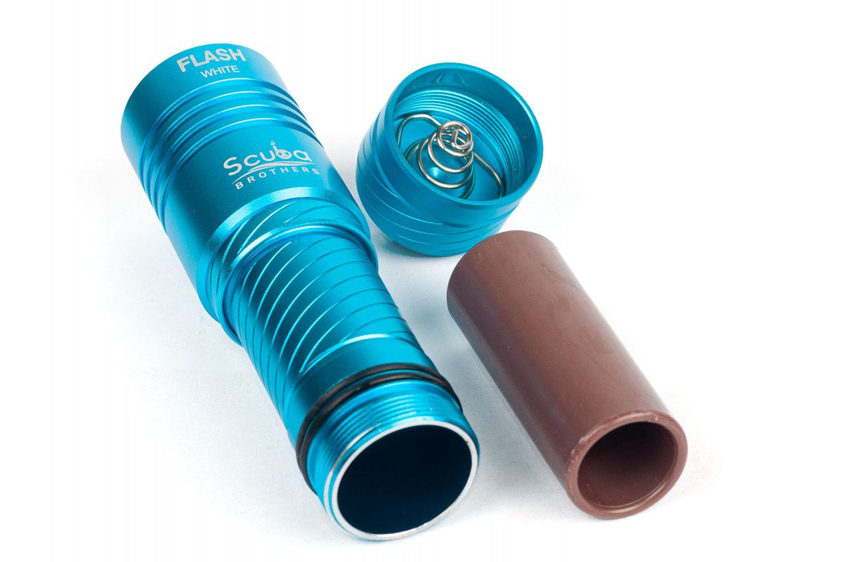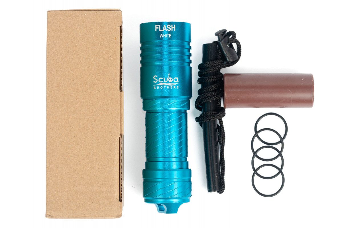Фонарь SCUBA BROTHERS FLASH BLUE 2000Lm CREE XM-L L2, холодный белый свет, для подводный для охоты и дайвинга, с максимальной глубиной погружения 100 метров. SCUBA BROTHERS FLASH изготовлен из высокопрочного авиационного алюминия с анодированием. Удобный магнитный переключатель (ползунок). Фонарь очень яркий, лёгкий и компактный.Диод CREE XM-L L2 теплый белый свет отличается высокой надежностью и долговечностью. Диод имеет основное поле засветки и пробивной центральный луч, идеален для погружений в прозрачной воде и для фото/видео съемок.Фонарь комплектуется ремешком на запястье и даже если у выпадет у вас из рук, то он не утонет. Так же этот компактный фонарь очень удобно использовать как подствольный фонарь для подводного ружья, луч света будет направлен строго по линии ствола и направлению выстрела ружья.Благодаря вставке гильзе с фонарем можно использовать батареи серии 26650 или батареи серии 18650.Комплектация: фонарь (без аккумуляторов, без зарядного устройства), ремешок на запястье, запасные О-ринги, вставка гильза.Гарантия: гарантийный срок 30 дней с моменты приобретения.Советы использованию, обслуживанию и хранению:1. Не направляйте луч фонаря прямо в глаза.2. Фонарь можно использовать только в воде, на суше диод фонаря перегорит из-за перегрева.2. Не устанавливайте аккумуляторы с обратной полярностью.3. Храните фонарик без батареек, чтобы предотвратить возможную коррозию из-за утечки аккумулятора.4. Всегда заряжайте аккумулятор при тусклом свете, это позволит избежать перезарядки батарей и продлить срок службы.5. После использования в соленой воде необходимо тщательно промыть фонарь в пресной воде.6. Очистите, смажьте О-ринги, что лучше для длительного использования фонарика.7. Очистите аккумулятор и электрические контакты.8. Храните фонарь в сухом прохладном месте вдали от прямых солнечных лучей.Характеристики:- рекомендации по использованию: подводная охота, дайвинг;- модель: FLASH BLUE теплый свет;- артикул: flashbluesbwt;- свет: холодный белый;- яркость светодиода, кельвин: 3200;- срок работы светодиода: до 10000 часов;- диод: CREE XM-L L2 (второе поколение);- мощность светового потока, lm: 2000;- рукоятка: противоскользящий материал.- цвет корпуса: черный, зеленый, синий, красный;- материал корпуса: авиационный алюминий;- линза: закаленное стекло;- материал отражателя: отражающая поверхность с текстурированной поверхностью из алюминиевого сплава;- переключатель: магнитный ползунковый выключатель (плавное затемнение);- max глубина использования, м: 100;- водонепроницаемость: IPX8;- питание: используются батареи серии 26650 или батареи серии 18650 (при использовании гильз);- длина фонаря, мм: 136;- диаметр рукоятки, мм: 32;- диаметр рассеивателя, мм: 38;- вес фонаря, грамм: 170;- вес комплекта, грамм: 194;- ремешок на запястье: да;- бренд: SCUBA BROTHERS;- страна бренда: Россия;- страна производства: Китай.