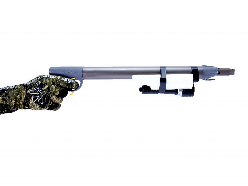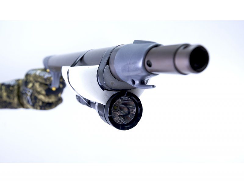 Помимо надежного крепления фонаря к ружью служит компенсатором плавучести. Поплавок-крепление фонаря изготовлен из вспененного полистирола (пенопласта). Готовое изделие имеет ячеистую структуру с закрытыми порами, исключающую напитывание водой, разбухание, а также изменение характеристик материала в процессе эксплуатации. Компенсатор плавучести устойчив к ультрафиолетовым лучам и перепадам температур. Поплавок-крепление фонаря позволяющую отгрузить весь фонаря, прикрепленного к ружью, до состояния нейтральной плавучести в заряженном состоянии и, ярко-выраженной положительной плавучести, без гарпуна. Поплавок устанавливается на ружье при помощи водостойкой крепежной ленты, входящей в комплект изделия. В комплект идет изолента для крепления держателя фонаря к ружью. Управление режимами работы фонаря удобно регулируется поворотом головы фонаря.