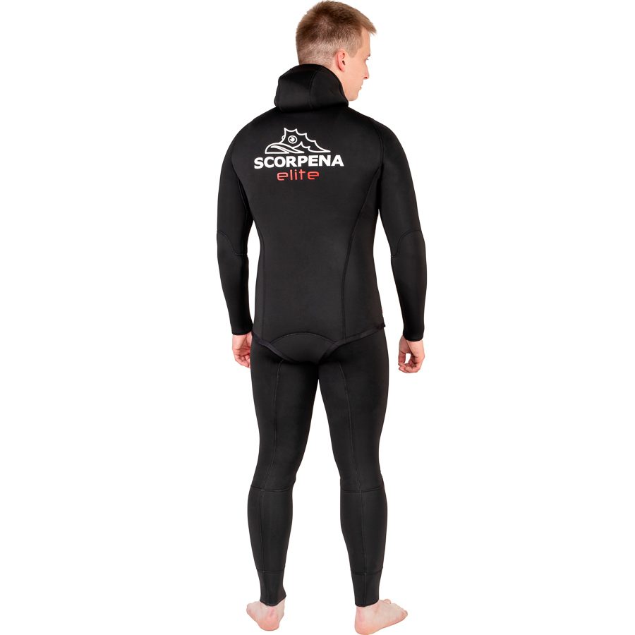 Гидрокостюм Scorpena Elite2 отвечает самым современным требованиям по составу материала и способам его производства. Гидрокостюмы Scorpena Elite2 изготовлены из мягкого и эластичного неопрена фирмы SHEICO, склеены новейшим  клеем на водной основе (без химического растворителя). Затем ткань сшита «слепым» швом (игла не пробивает неопрен насквозь, а только сшивает внешнюю ткань), что препятствует проникновению воды через швы. Все ткани приклеены новейшим неопреновым клеем на водной основе. Сам неопрен из природного сырья и новые клеи которые использовались при производстве позволяет нам включить новейшие костюмы Scorpena Elite2 в экологическую — «»зелёную»» линейку нашего брэнда!Гидрокостюм Scorpena Elite2 имеет проверенную временем и тысячами подводных охотников выкройку из 28 деталей. Модель идеально садится на большинство фигур без зон излишнего натяжения материала, плотно прилегает к телу, обеспечивая максимальную теплоизоляцию. Костюм состоит из куртки с капюшоном и комбинезона с лямками.Внутри костюма открытая пора, с наружной стороны неопрен покрыт высокоэластичным материалом эластан (аналог Lycra). Благодаря резиновой составляющей в нитях материала, такое покрытие почти не ограничивает свойства неопрена к растяжимости. Костюм легко садится по фигуре и не сковывает движения в суставах. Комфортный крой и удобство костюма позволяют охотнику нырять дольше и глубже.Для большего комфорта при заряжании подводных ружей с резиновыми тяжами, костюм Scorpena Elite2 имеет накладку значительно увеличенной толщины в области груди. Области колен на штанинах покрыты износостойким материалом Supratex.Благодаря хорошо продуманному крою шлем гидрокостюма максимально закрывает лоб и подбородок, обеспечивая плотную посадку при свободе движений.Scorpena Elite2 сочетает в себе отличные технические характеристики, минималистичный дизайн и приятную цену.