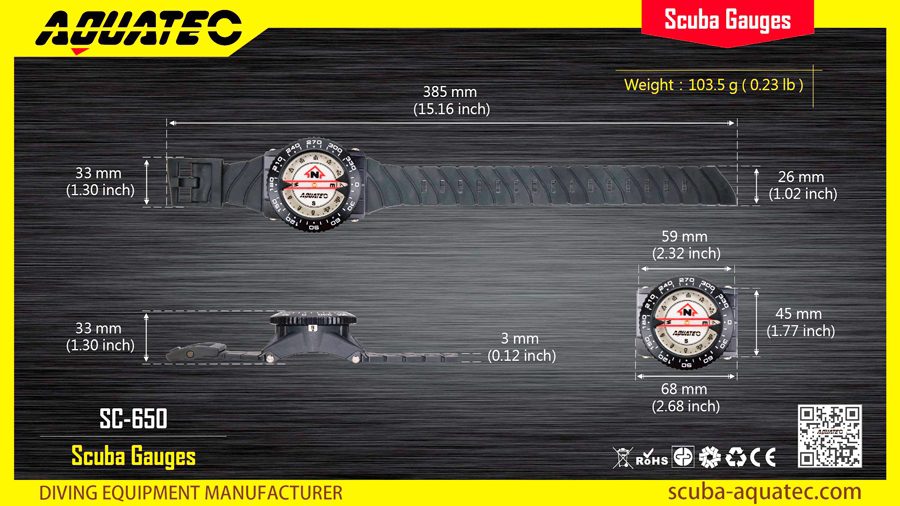 Компас наручный Aquatec Надежный и точный компас для подводной навигации — Устойчивый к царапинам и прочный маслонаполненный корпус из поликарбоната — Ярко светящийся циферблат для удобства ориентирования в условиях низкой освещенности — Окошко бокового обзора — Работает при значительном угле наклона (25 градусов) — Крупные, легко читаемые цифры — Вращающийся на 360 градусов безель — Диаметр: 57,5 мм — Крепление на шланг/консоль в комплекте