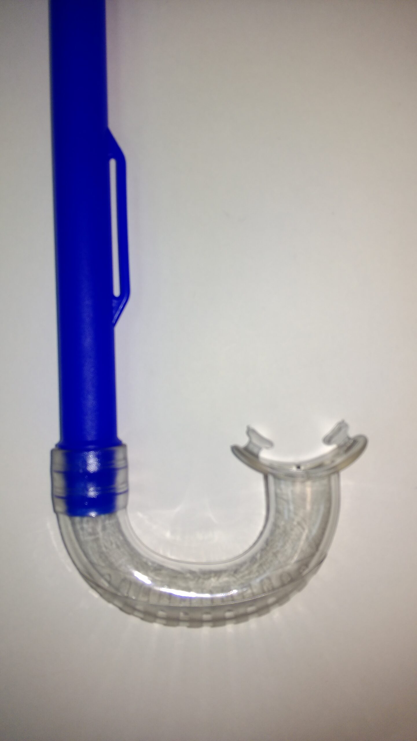 Анатомическая форма трубки изогнута для уменьшения гидродинамического сопротивления. Загубник выполнен из силикона. Резиновый крепеж легко вращается и перемещается по трубке.