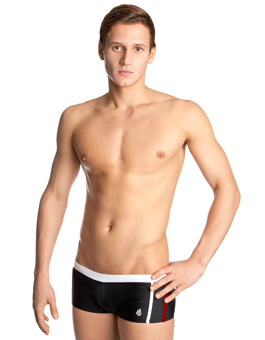 Плавки-шорты с заниженной талией. Внутри шнурок. Высота бокового шва — 15 см. Модель подходит для занятий в бассейне и пляжного отдыха