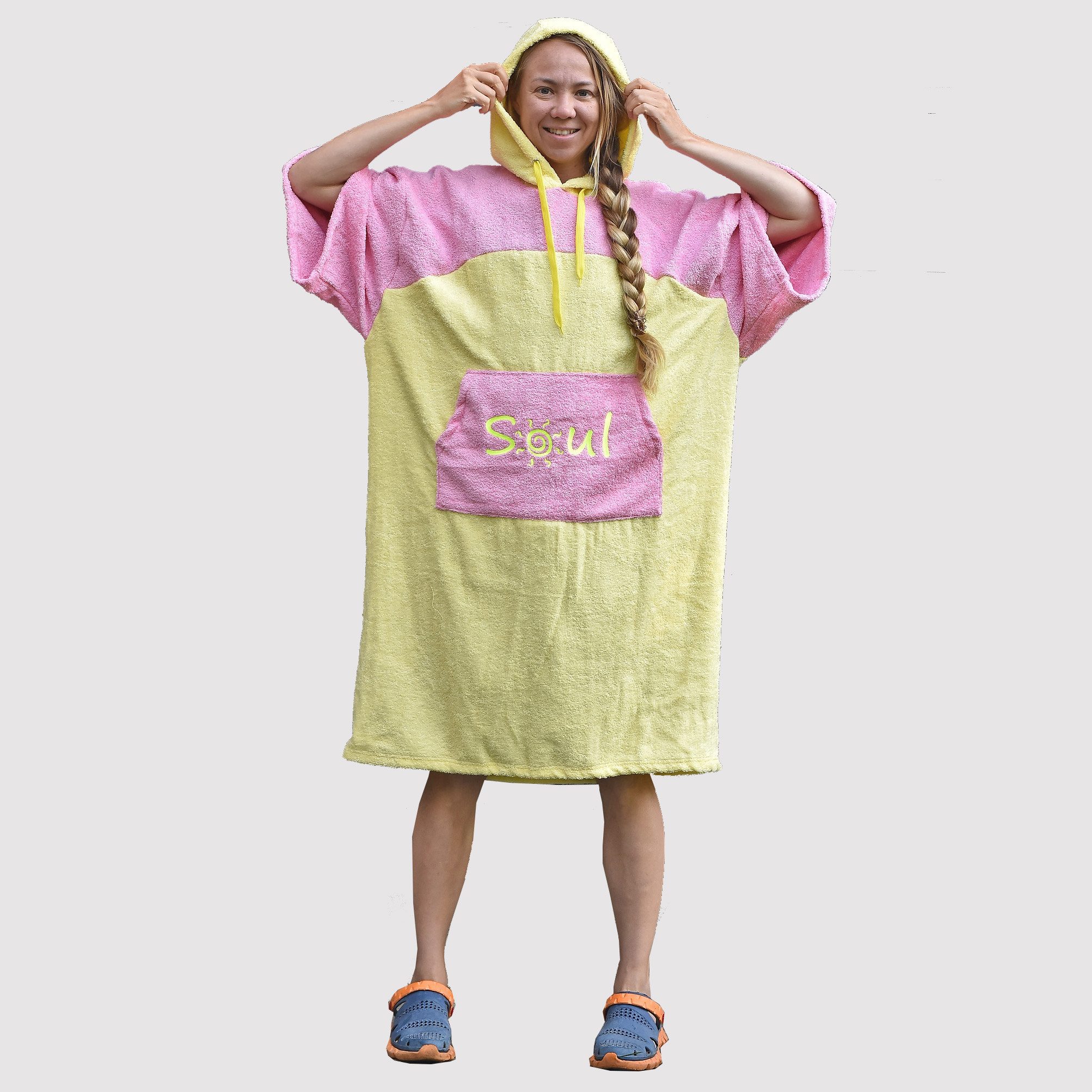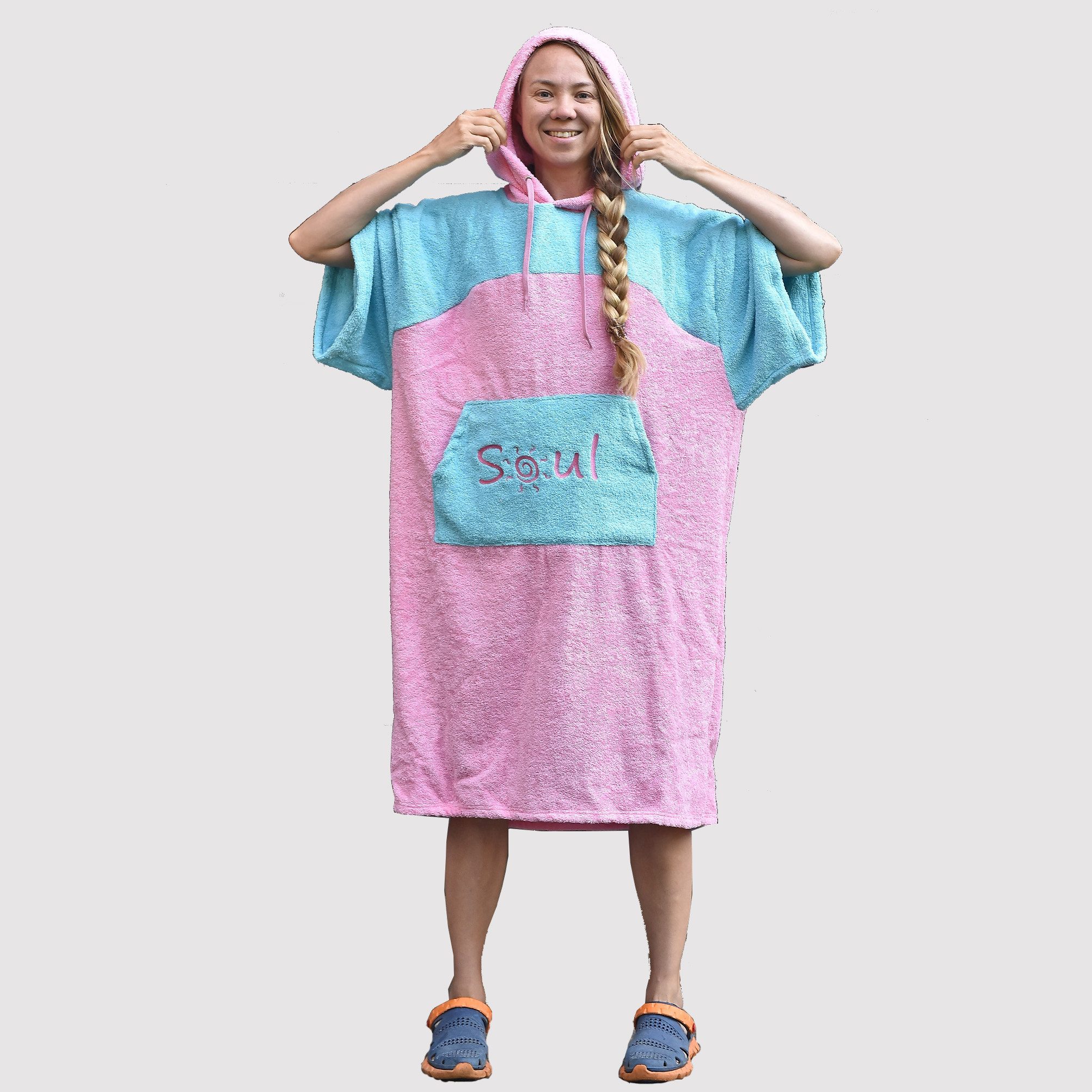Махровая ткань известна каждому. Она прочно вошла в обиход в виде самых обычных полотенец, которыми каждый из нас пользуется ежедневно.Это натуральный материал, представляющий собой полотно с ворсистой поверхностью. Ворс чаще всего представляет собой длинные петли. Для наших пончо мы используем двусторонний ворс, чтобы было приятно и телу, и глазам .Мы предлагаем модели из махры плотностью 320гр/м2. Оптимально подходит для использования в теплых странах, где температура воздуха в районе 20-30 градусов. Вам точно будет комфортно и приятно переодеваться на споте и просто носить махровое пончо в такую погоду — тело дышит, сохнет и естественно расслабляется после каталки. Ничто не сковывает движения, а приятная махровая ткань даже даёт легкий массажный эффект своими ворсинками Стоит 1 раз попробовать, и вы уже не поедете на каталку без пончо!